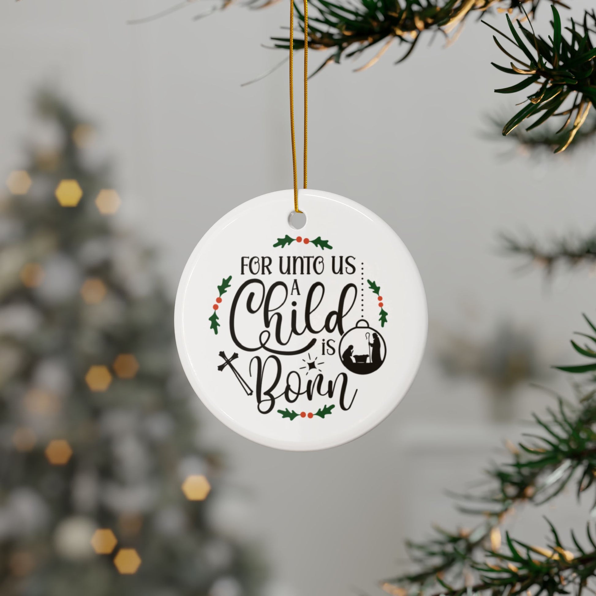 Christmas Ceramic Ornaments, Holiday Decor, Gift, Child is Born Design, 2-Sided Print, Set of 1, 3, 5, 10